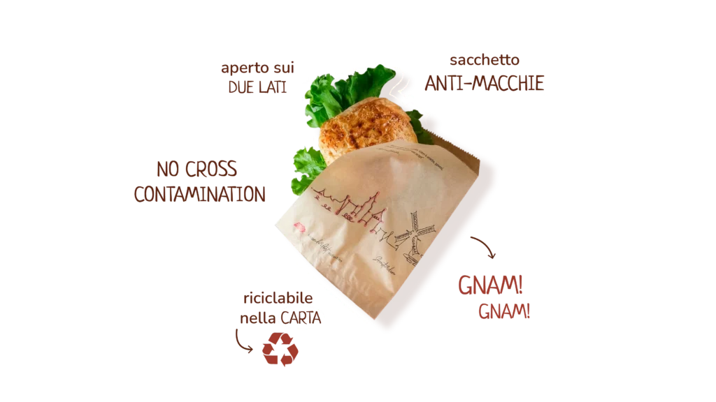 Il Paniké è lo speciale sacchetto antigrasso, che, se utilizzato nel modo corretto, è in grado di prevenire la cross contamination degli alimenti cotti sulla piastra.