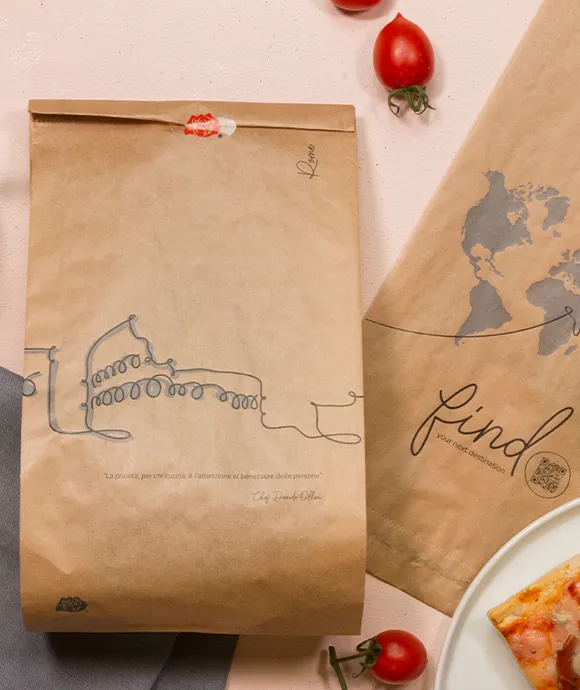 La linea comprende sacchetti e carte di tanti formati e grammature diverse, proprio per soddisfare qualsiasi esigenza della ristorazione e, grazie alle sue caratteristiche tecniche offre molto di più dei packaging tradizionali in termini di cura del servizio e del cliente.